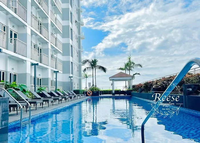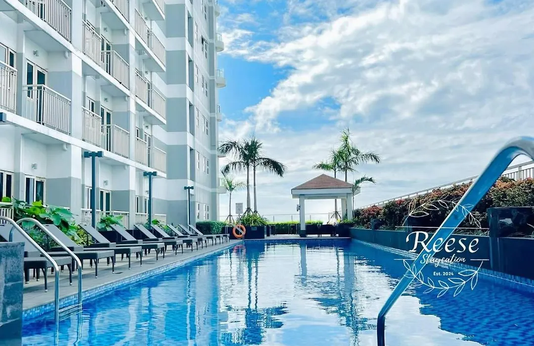寝室1室のJessa Rios Coast Staycation マニラ市 ヴィラはSmモール・オブ・アジアから2.9キロメートル離れた所の場所に位置し、プールを提供しており、リラックスした滞在を楽しむことができます。 浴室1室のヴィラに駐車場とプールの景色を望むテラスがあります。